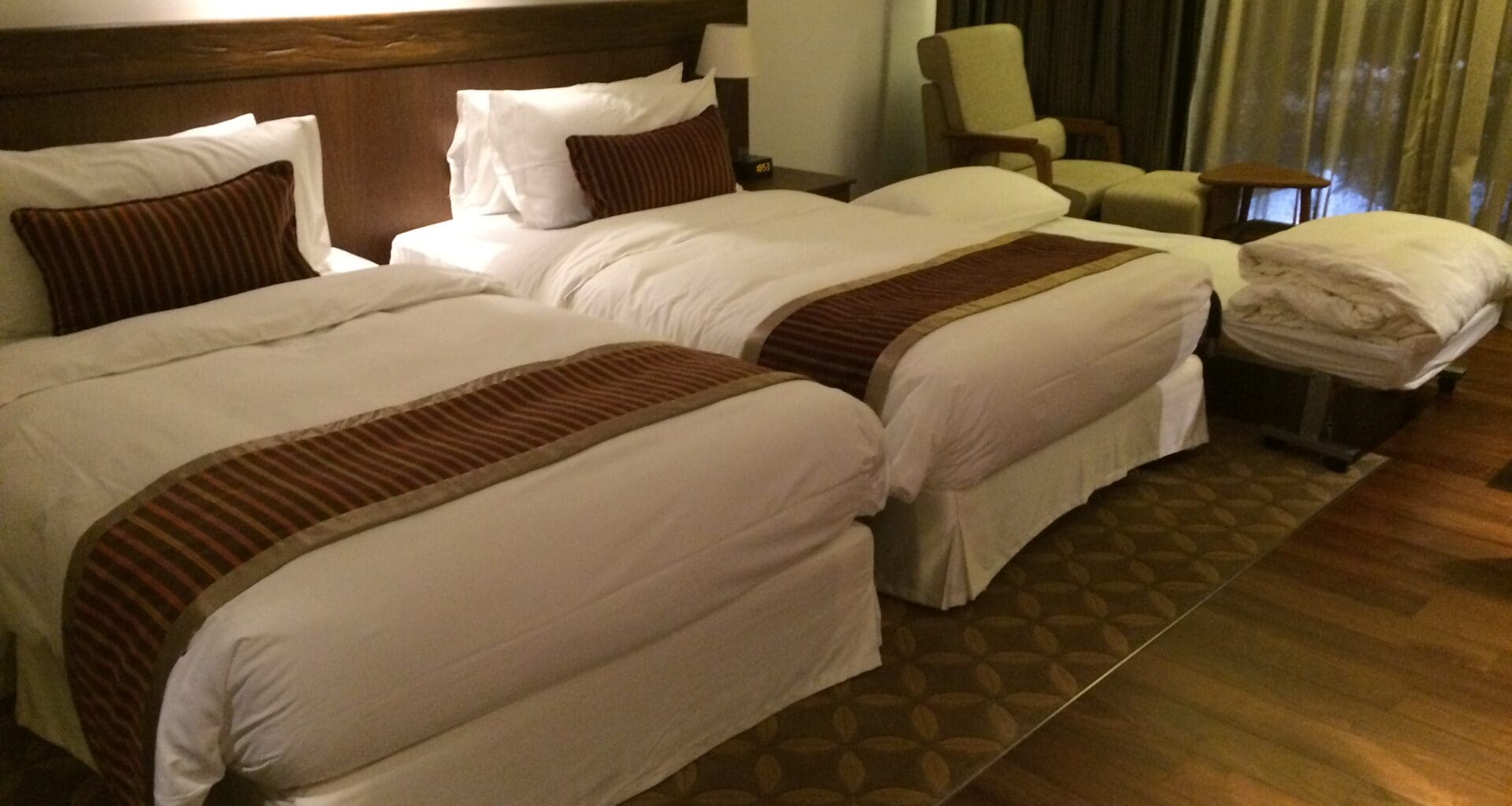 The Beas River Chalet has a standard twin bedroom and two Beas River Suites, in my understanding. As we were travelling with another family, we booked two interconnecting twin bedrooms, which the hotel offers at no extra price.