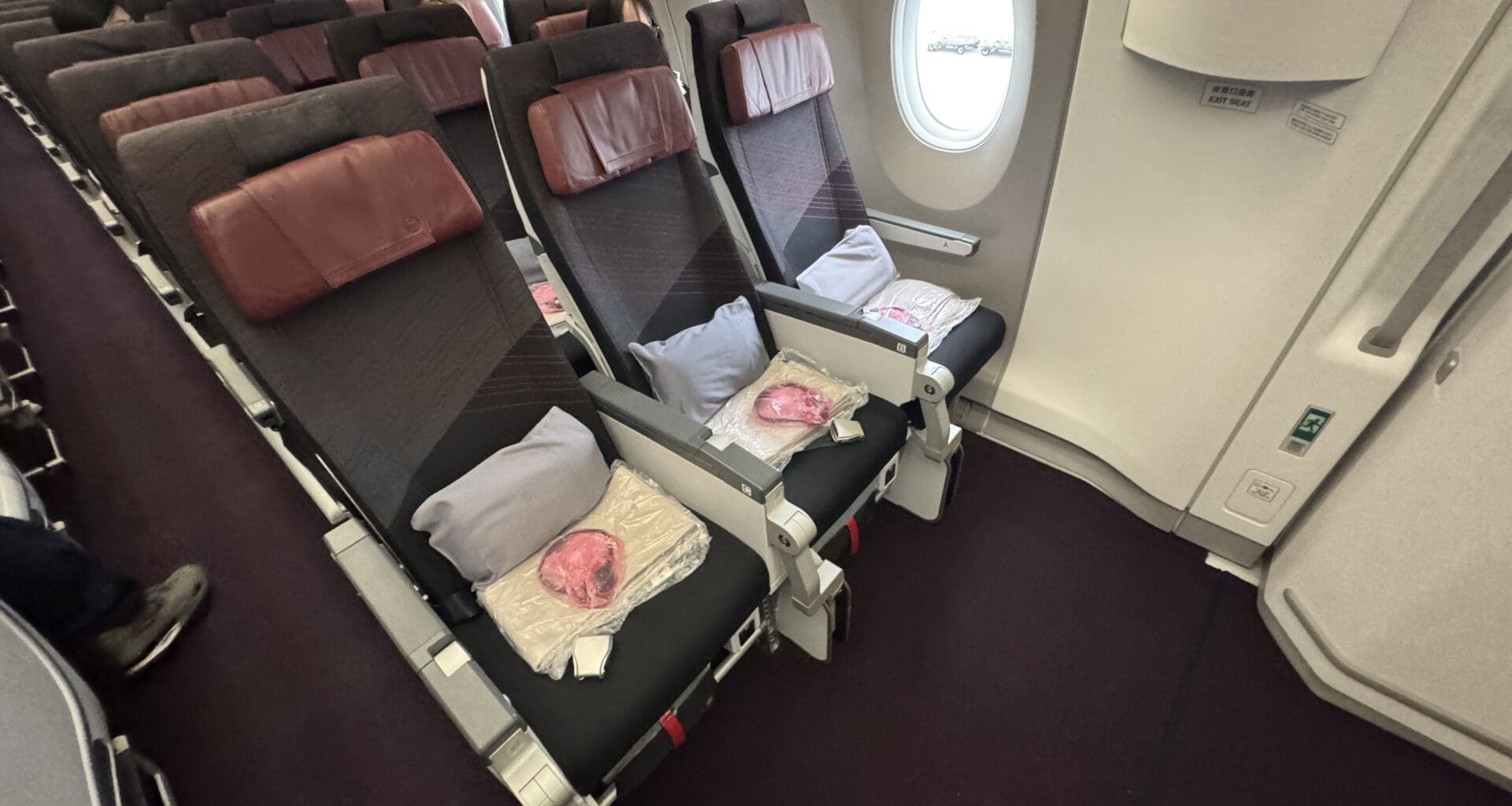That generosity doesn’t extend to their seat width – width is just 17-17.5″, as they cram nine seats across onboard their 787 aircraft. 9-abreast onboard a 787 is now industry-standard, though, as all but Japan Airlines now operate their 787s with a 9-abreast configuration.