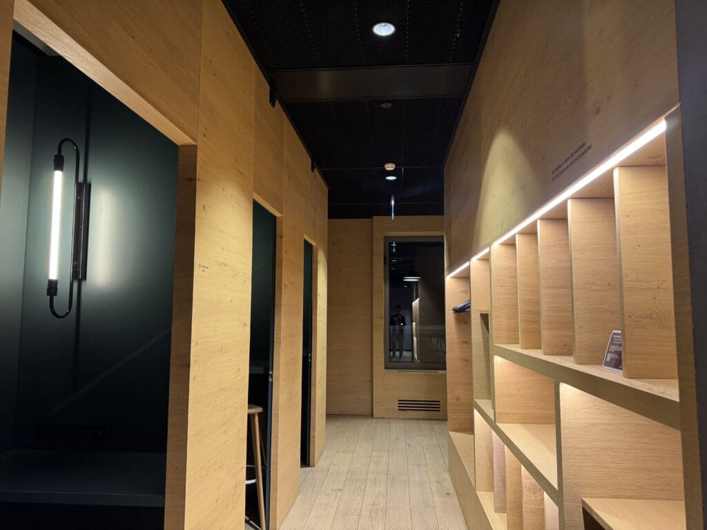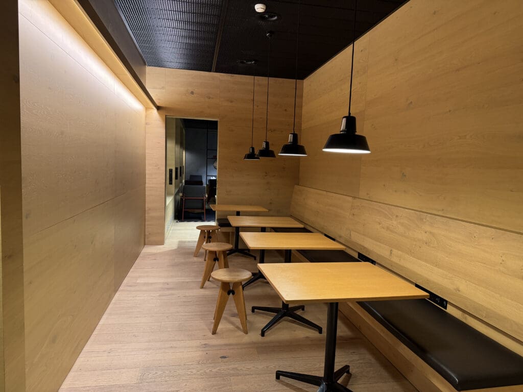 Near the entrance of the Alpine Lounge, you’ll find a corridor that leads to three workstations. These can be used as call booths, or for a more private work setup, though there’s no natural light here.