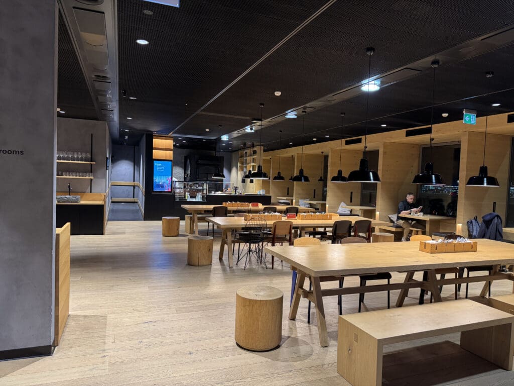 The Swiss Alpine Lounge has more limiting entry requirements than the neighbouring main lounge. However, if you’ve got Star Gold status or are flying Swiss or another Lufthansa Group airline in business class (even on a shorthaul flight), I’d certainly recommend popping by this lounge instead. It’s less than a minute’s walk away, and far less crowded during the day, despite its smaller size.