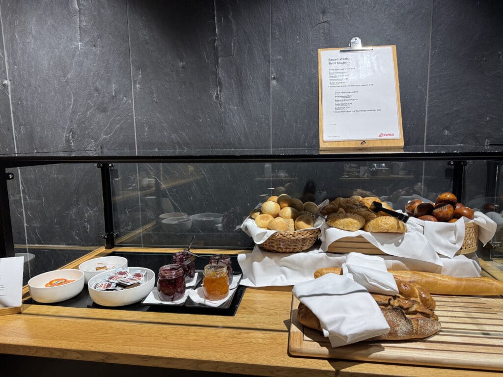 There was a bakery section, and there was also charcuterie and cheese. Swiss’ lounge breakfast spread really is consistently unremarkable.