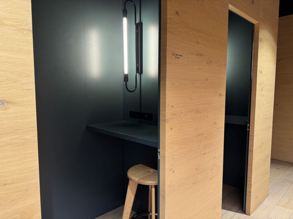 Near the entrance of the Alpine Lounge, you’ll find a corridor that leads to three workstations. These can be used as call booths, or for a more private work setup, though there’s no natural light here.