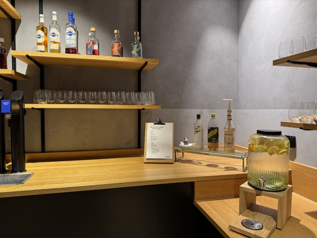 Much like at the arrivals lounge, there was no tended bar service, though there was a station specifically set up to make your own Golden Juniper cocktail if you wanted to.
