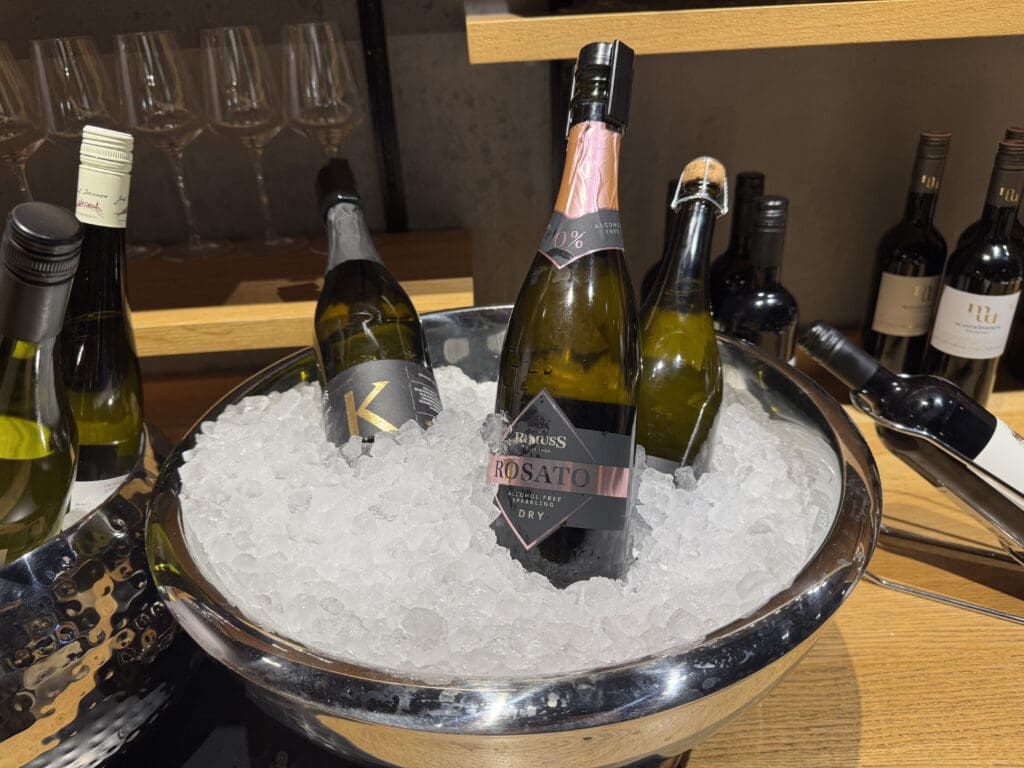 Also, there were a range of white and sparkling wines in an ice bucket. I subsequently had the chance to try the 0% Rosato sparkling wine (I did this at the E business class lounge, which I’ll be reviewing next), and I actually really liked it. I’d definitely recommend stopping by for a glass, even if you’re around in the morning.