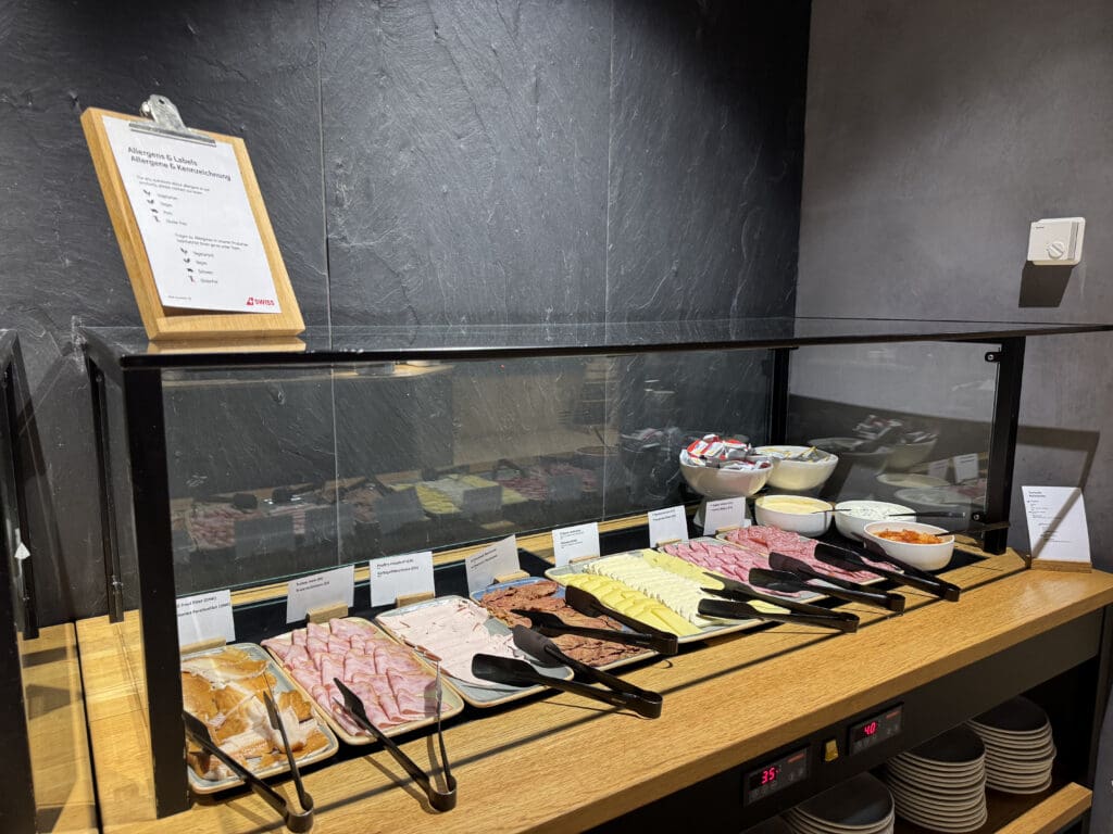 There was a bakery section, and there was also charcuterie and cheese. Swiss’ lounge breakfast spread really is consistently unremarkable.